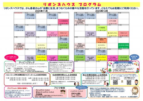 リボンズハウス 11月・12月 イベントカレンダーのお知らせ