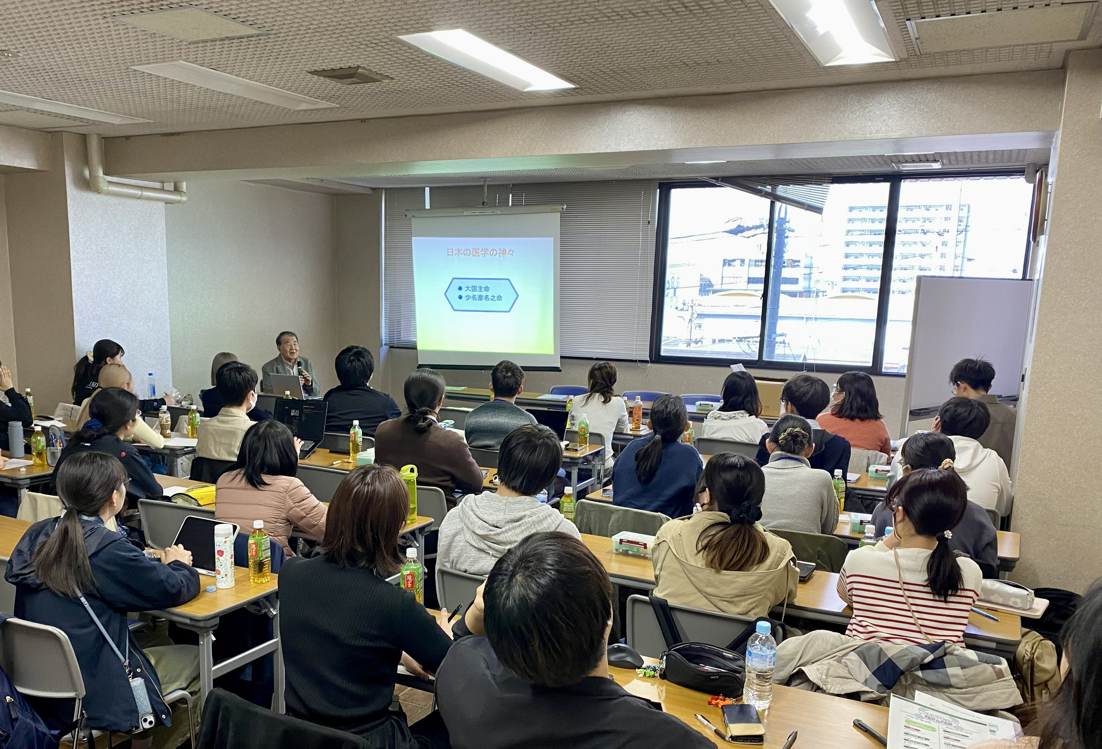 三重大学と愛知医科大学の学生漢方サークル東洋医学研究会が合同で主催した「学生のための東洋医学合宿2026」に、漢方医学センターのメンバーが協力しました。両大学の他、名古屋市立大学、金城学院大学、藤田医科大学、富山大学、大阪大学からの学生も参加して、2日間の日程を終えました。40人弱の参加者に対して、1日目は鍼の概説と打ち方指導を当センターの野瀬鍼灸師が、漢方の歴史について非常勤でスーパーバイザーの安井先生が講義を、漢方学習ツールKampokerの解説と実践をセンター長高村が行いました。2日目には症例検討会を高村が行いました。その他、クイズ大会やOBの講演など、素晴らしい合宿でした。学生さんのパワーに講師陣も圧倒され、このようなイベントが未来の漢方のためにとても有意義であると感じた2日間でした。とくに3種類の煎じ薬を味や香りと見た目だけで全て正解した大学が2つもあって、学生さんたちの実力に感動しました。